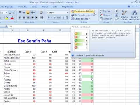 Formato Condicional excelente opción para reconocer números o porcentajes altos bajos etc, con un color o con un icono en excel 2007.